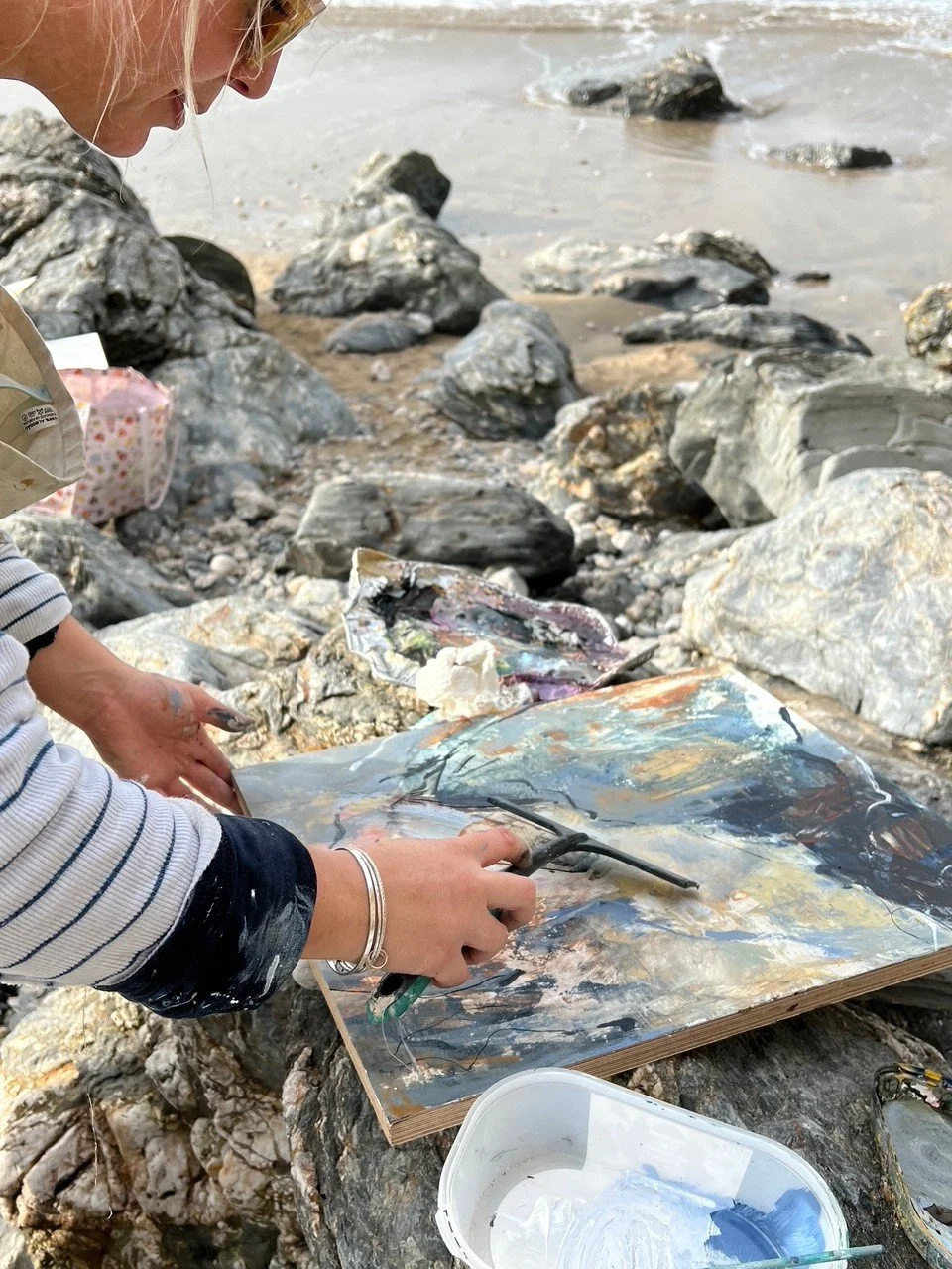 A combination of studio led at the studio at Krowji, (Redruth) and outdoor painting, with guidance from Artist and tutor Amy throughout.