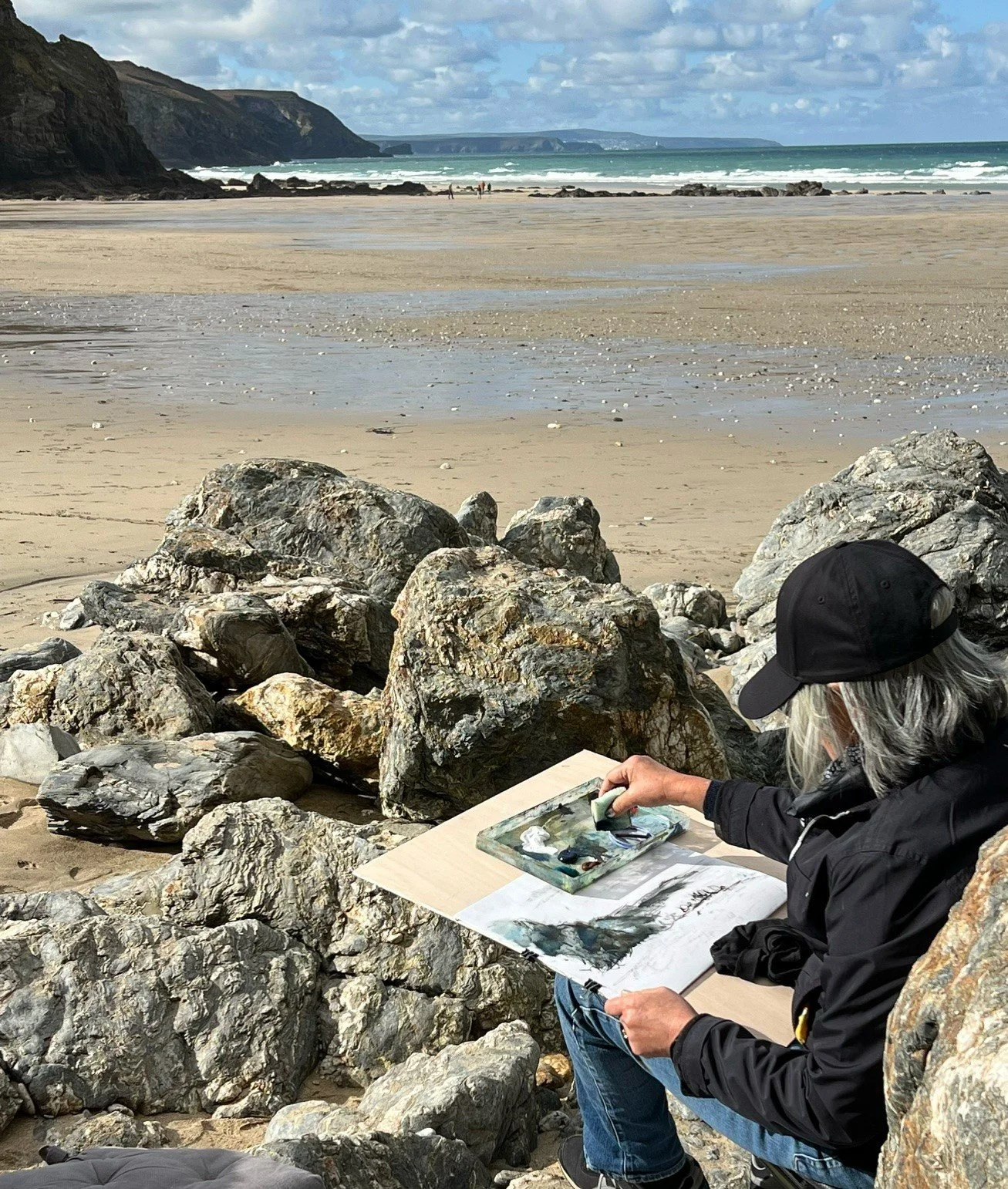 We will paint outside over looking Porthtowan, Chapel Porth or St Agnes beach, (Location to be to be decided depending on weather/wind, car needed) If there is a strong north wind we may have to venture inland or to Falmouth, no where more than 30 minutes from Krowji Studio base.